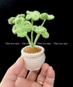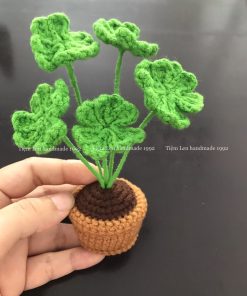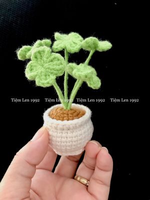 CHẬU CỎ BỐN LÁ BẰNG LEN HANDMADE – TIỆM LEN 1992