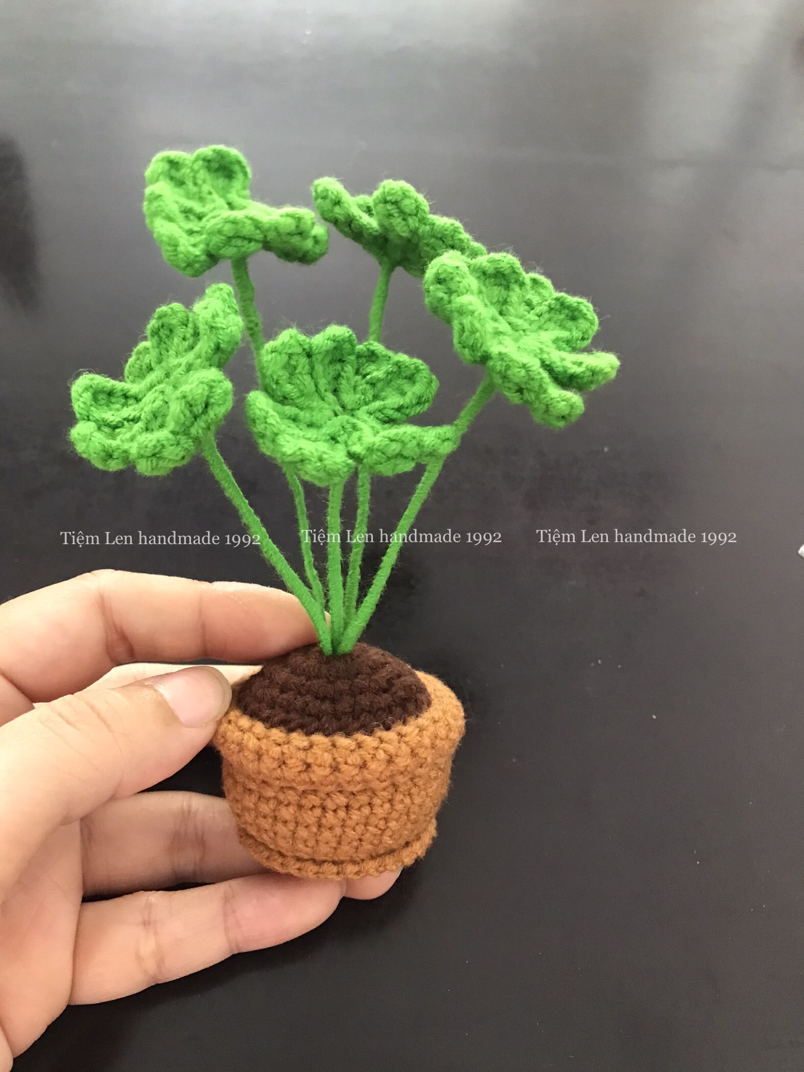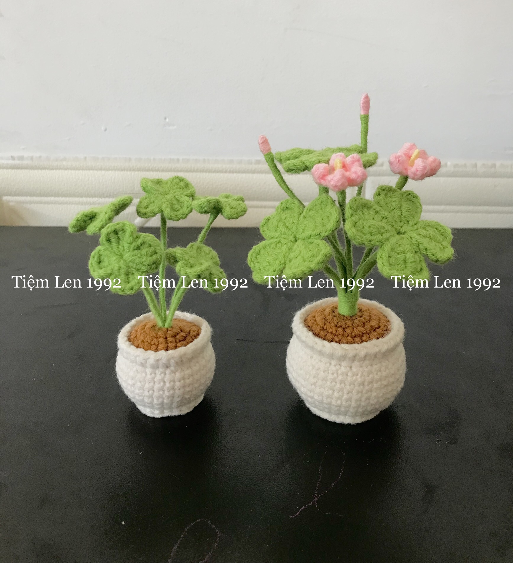 CHẬU CỎ BỐN LÁ BẰNG LEN HANDMADE – TIỆM LEN 1992