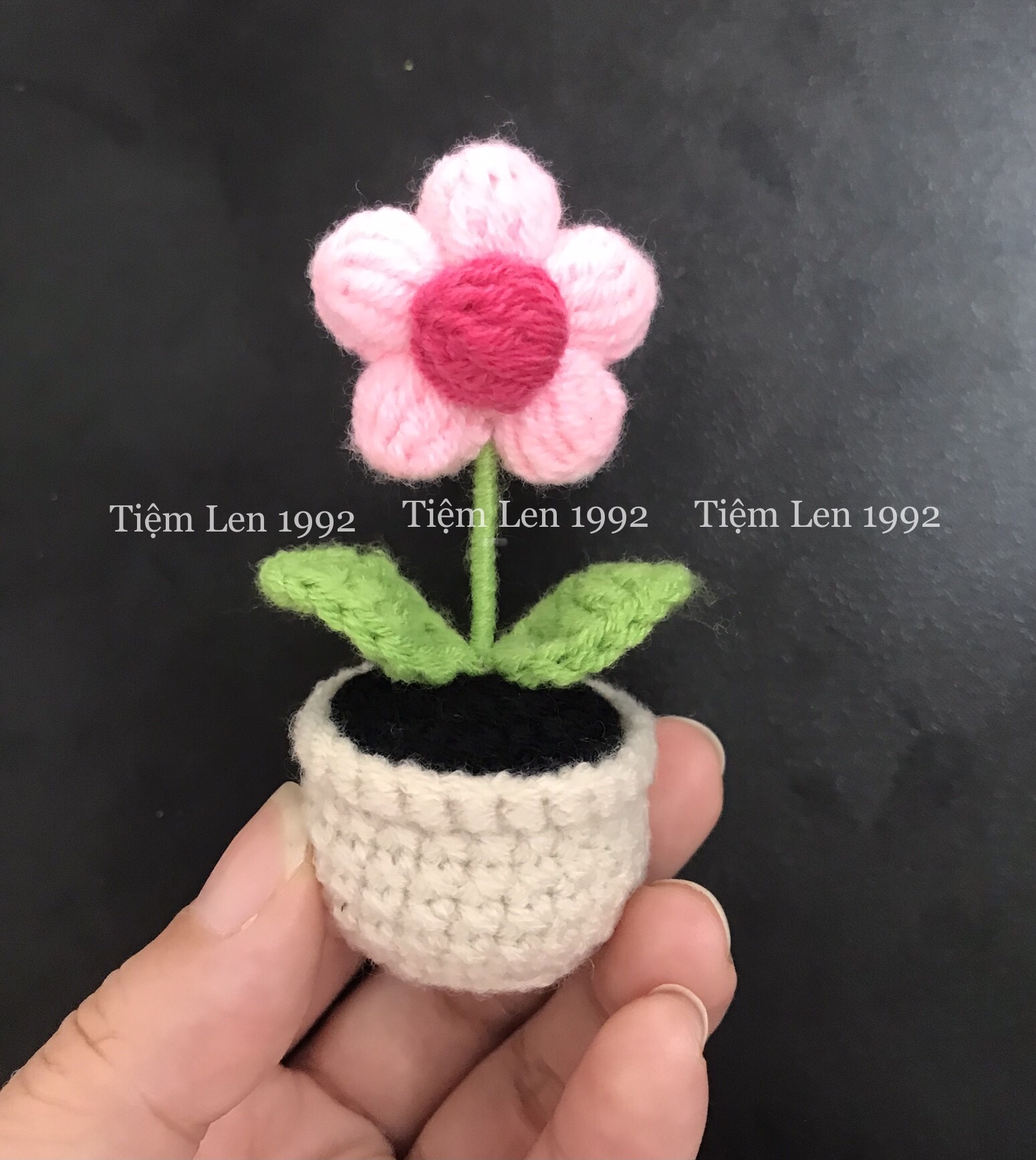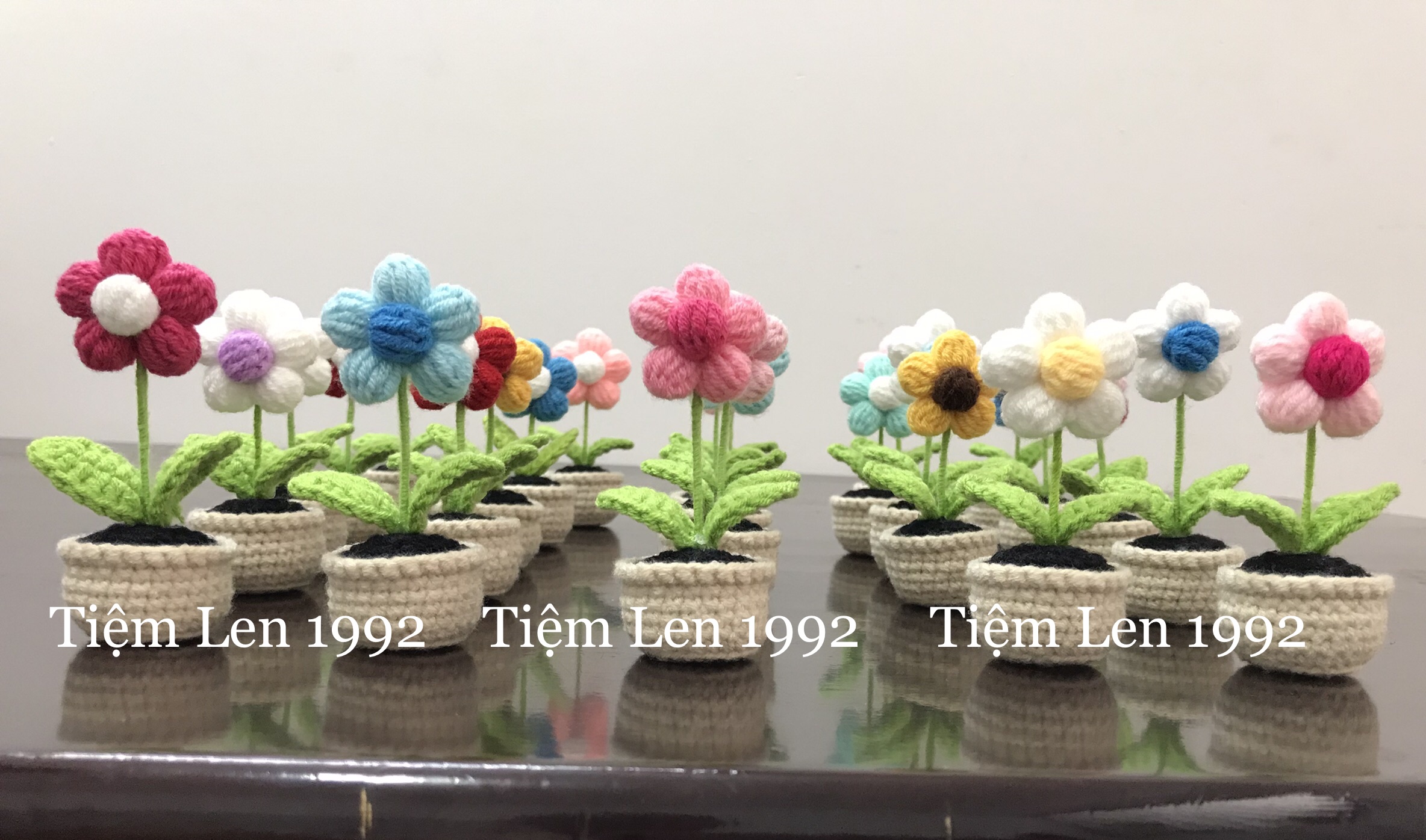 Những chiếc chậu hoa nhỏ xinh được Tiệm làm từ len cotton milk mềm mại, bền màu và bền chắc theo thời gian.